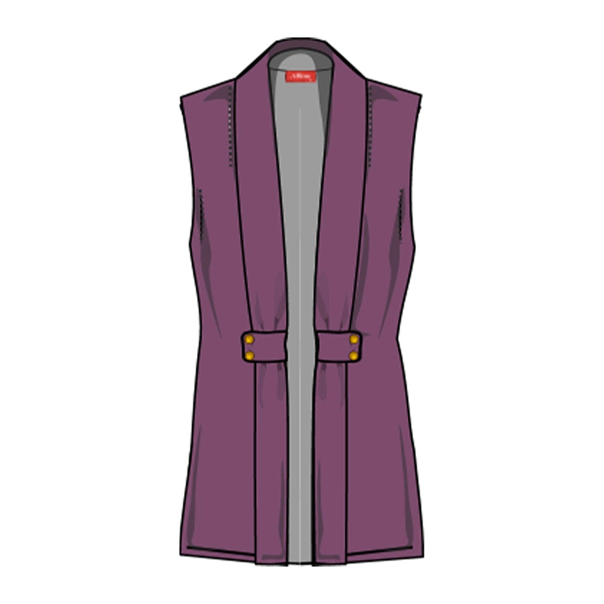 Chaleco tejido en color violeta con botones dorados en solapa.