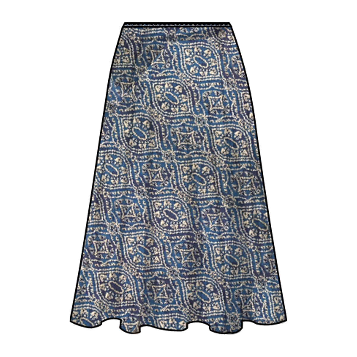 Flada de estampado geométrico en tonos azules con pretina elástica.