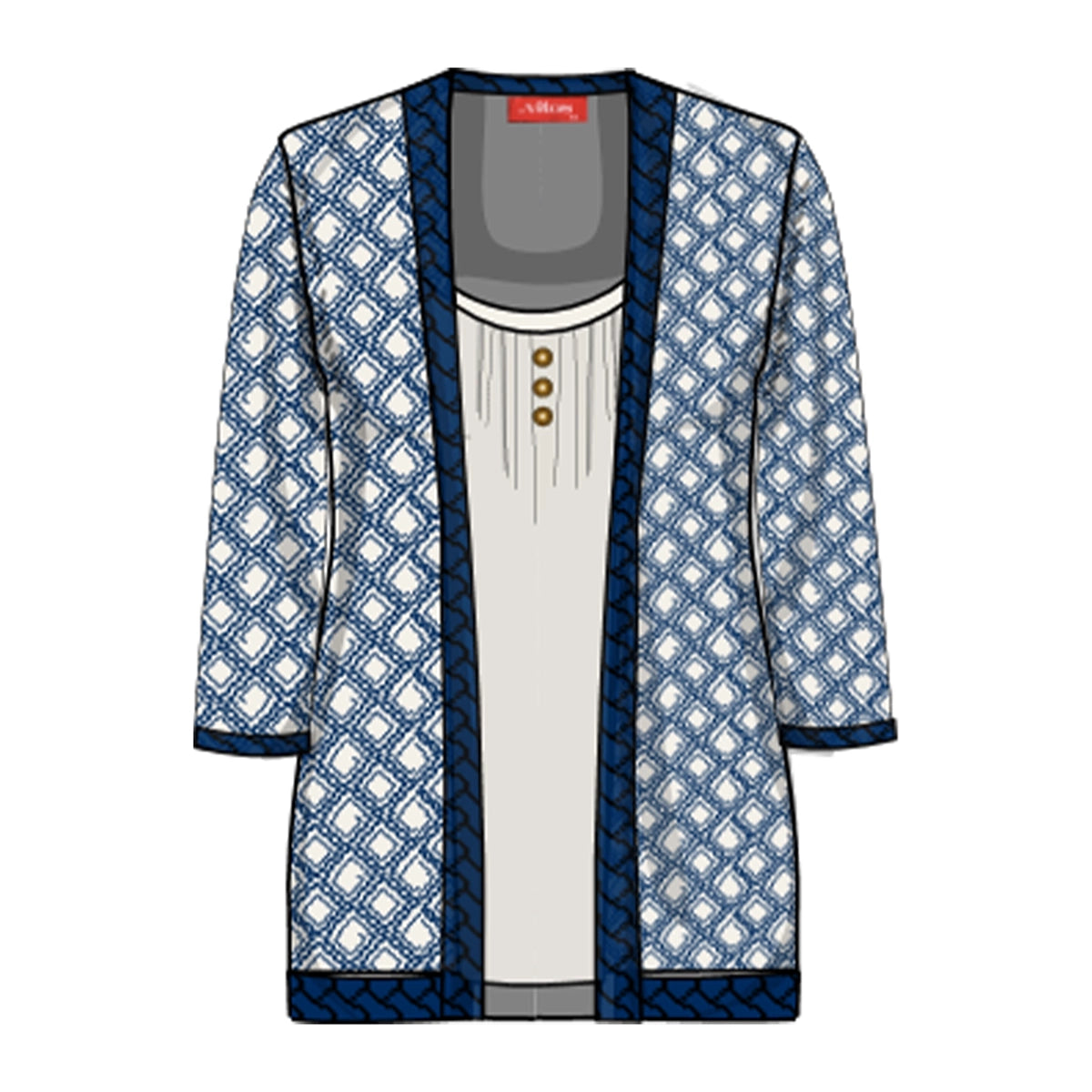 Twin Fix de puntada calada en color azul rey con top de tela blanco con botones decorativos al frente.