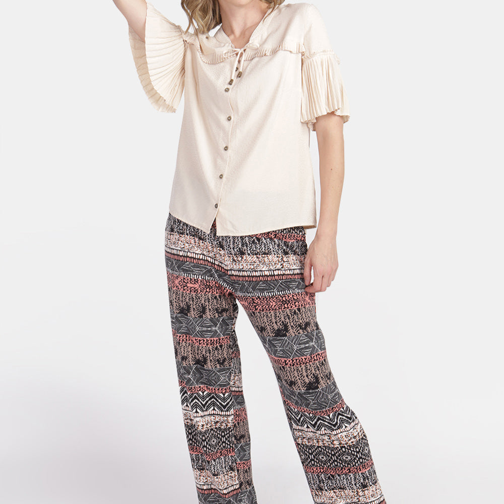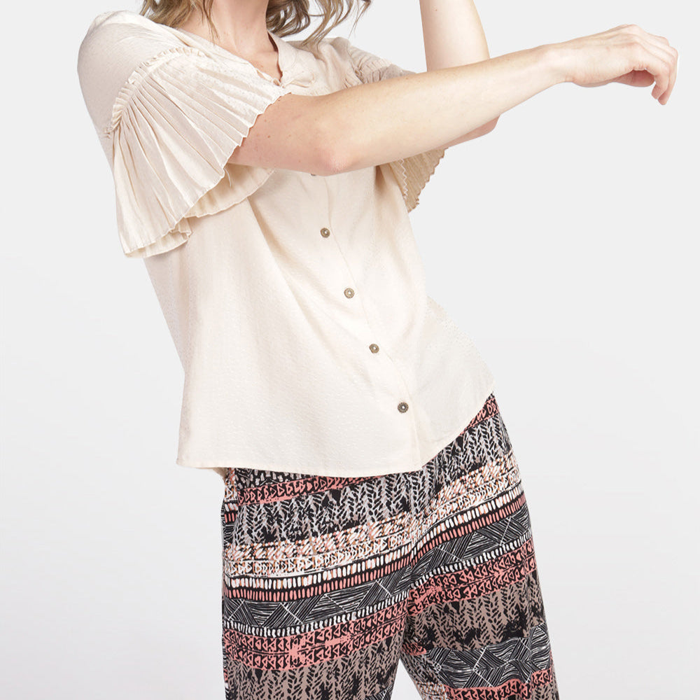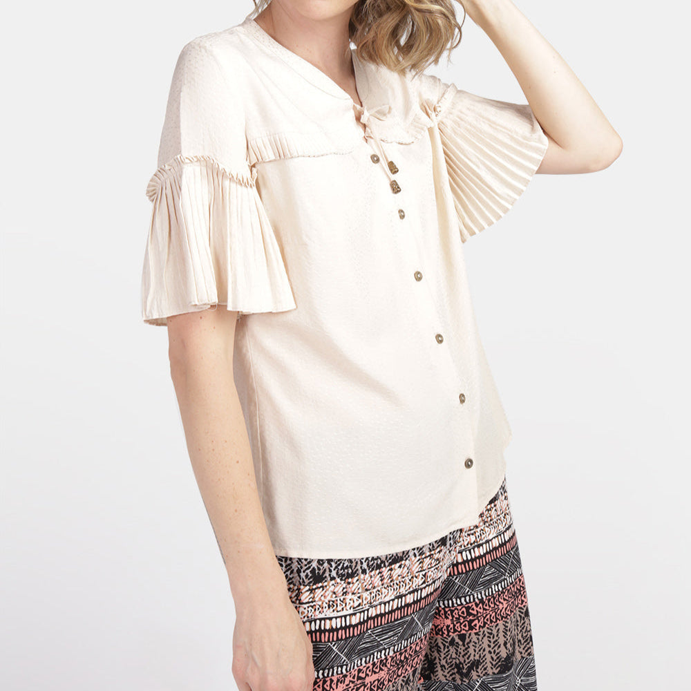 Blusa cuello mao manga plizada Estefania