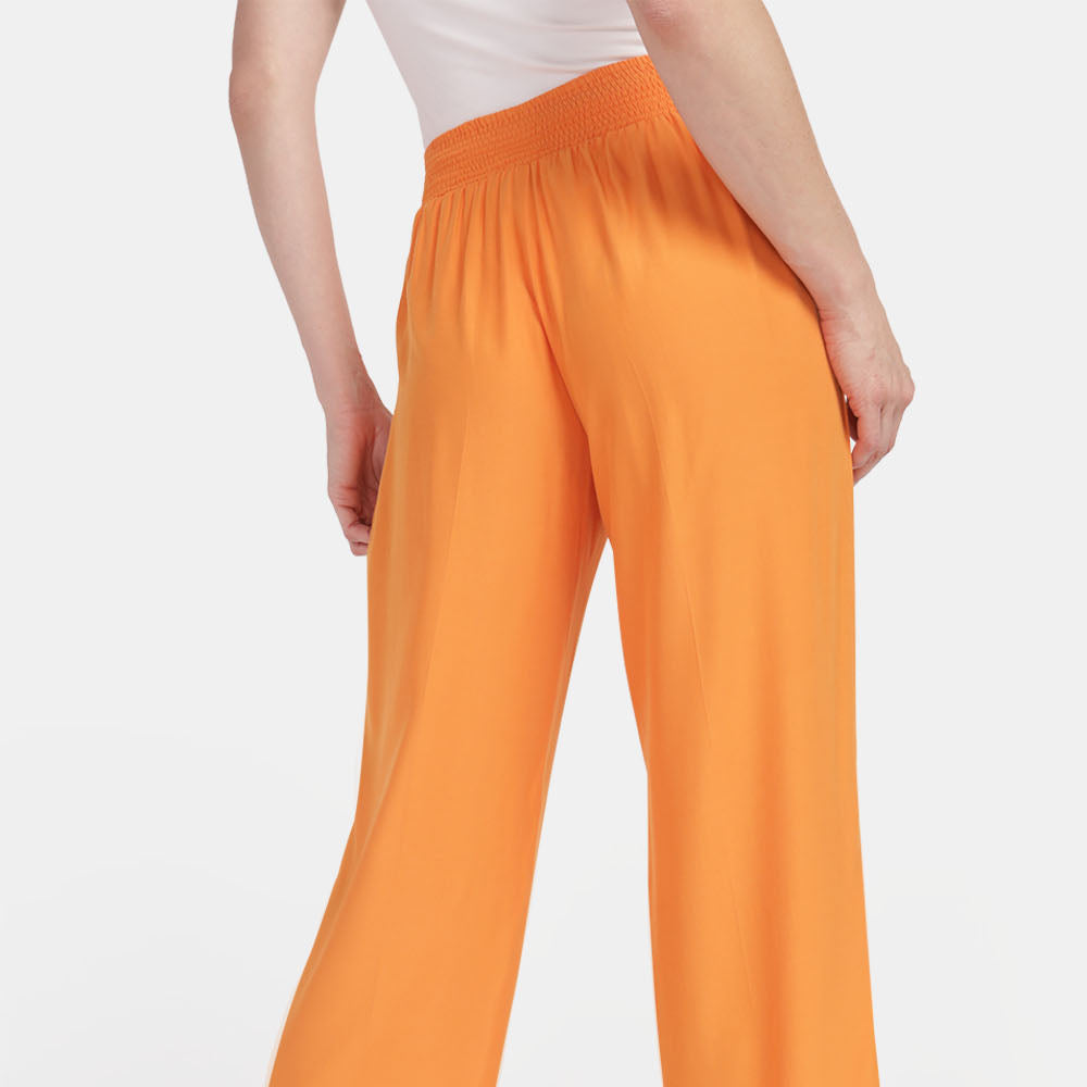 Lavar pantalones con agua fría y detergente líquido. No usar blanqueador, no exprimir. Si es necesario plancha tibia.