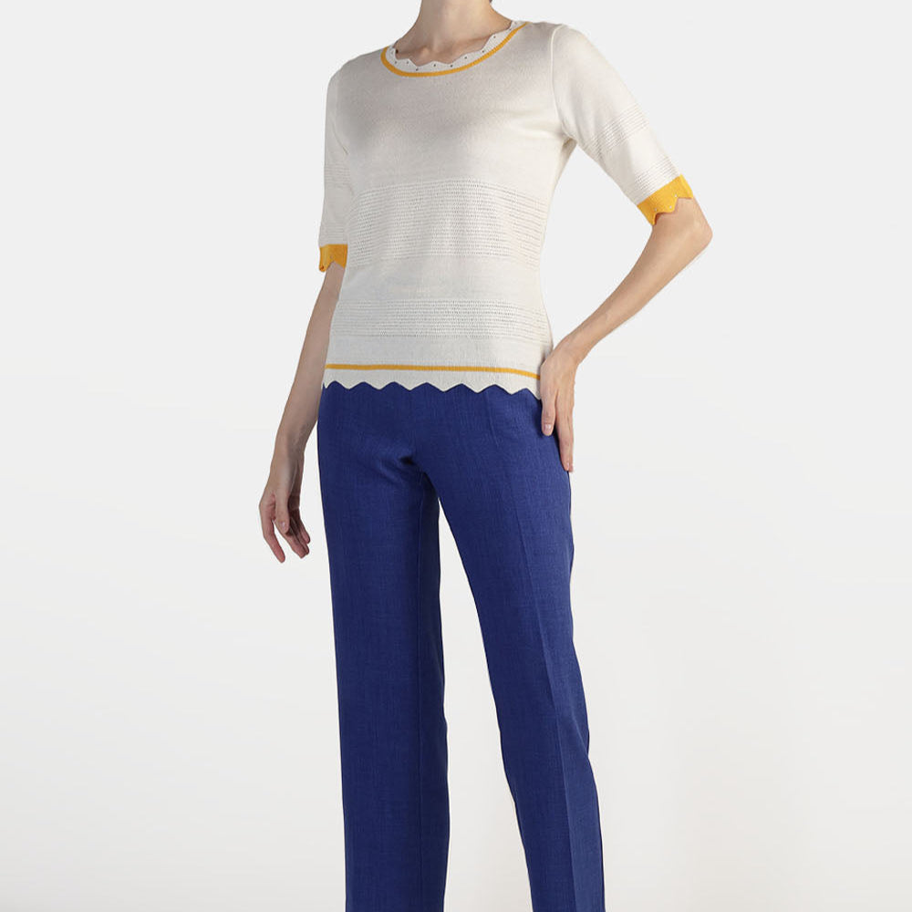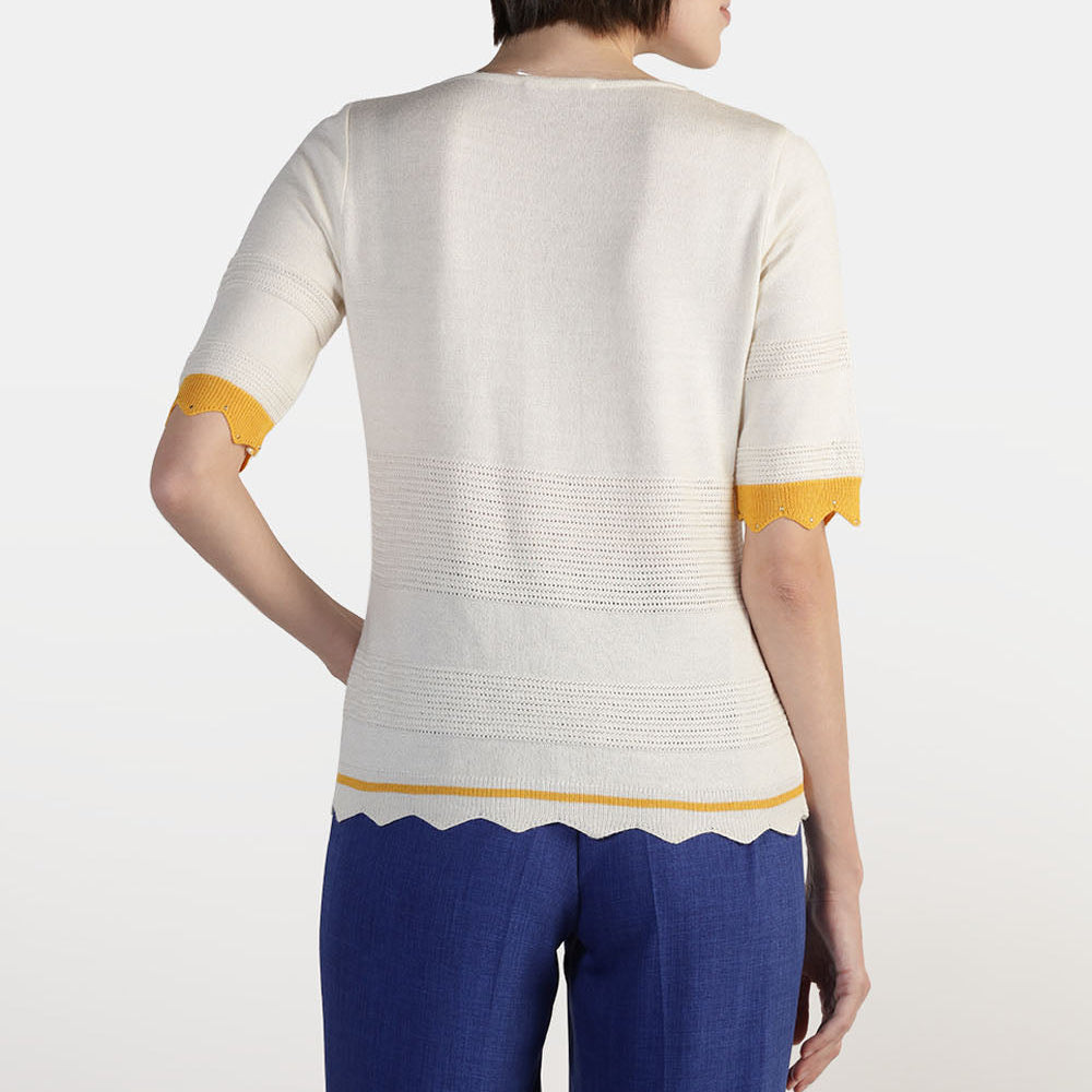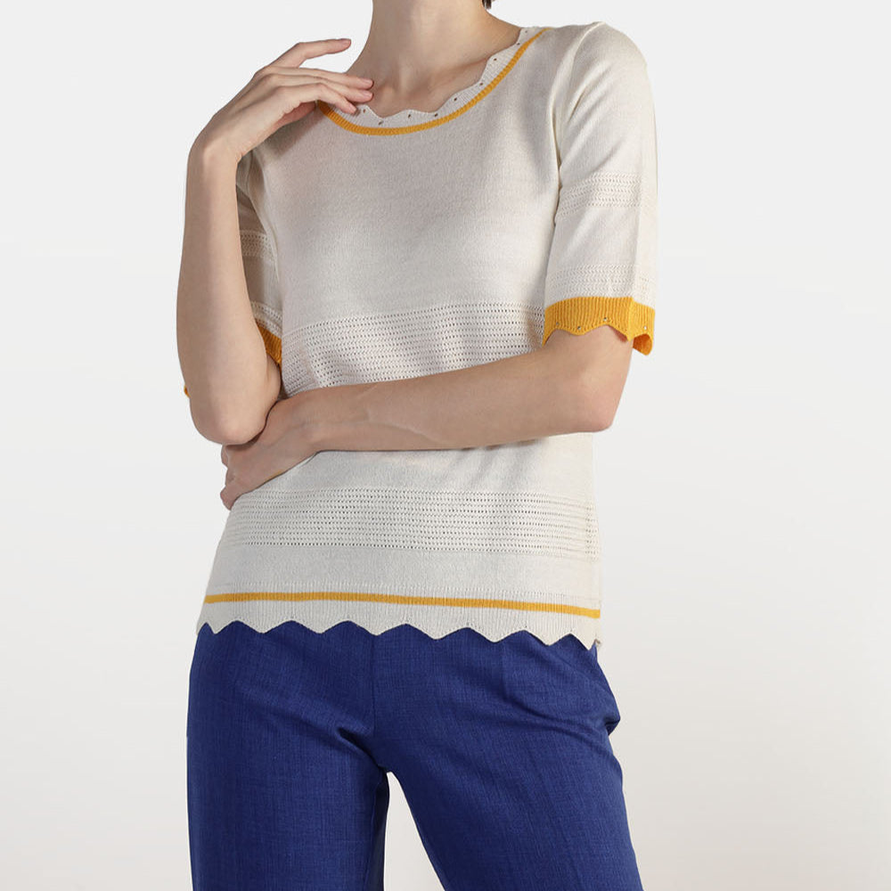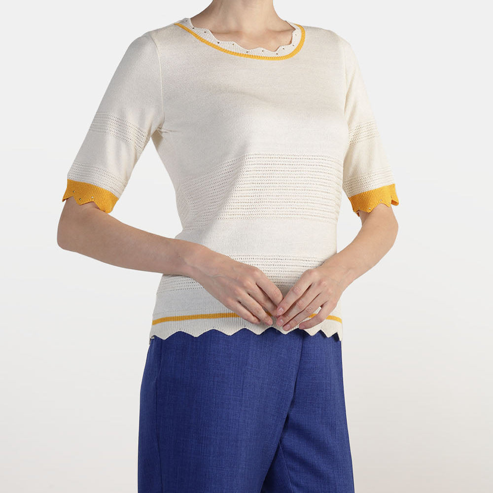 Blusa tejida con contraste en cuello y mangas con elevador Carlota