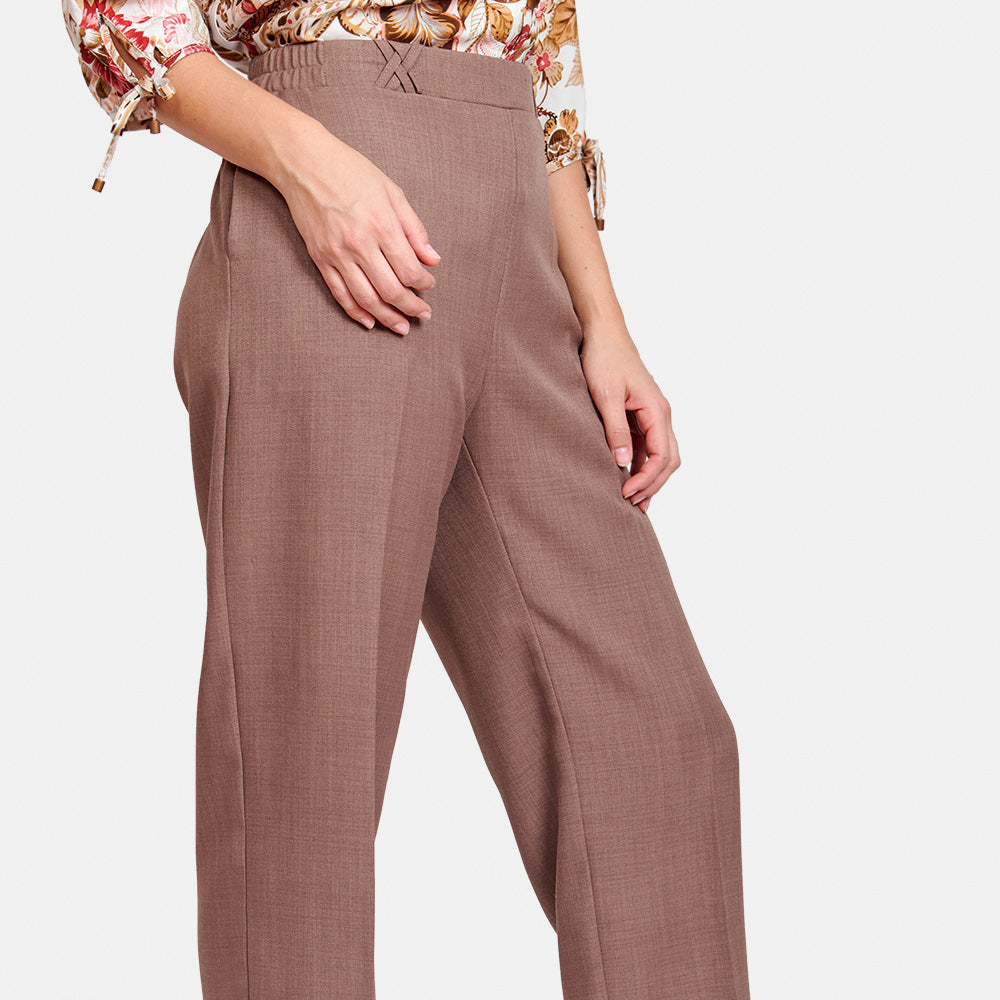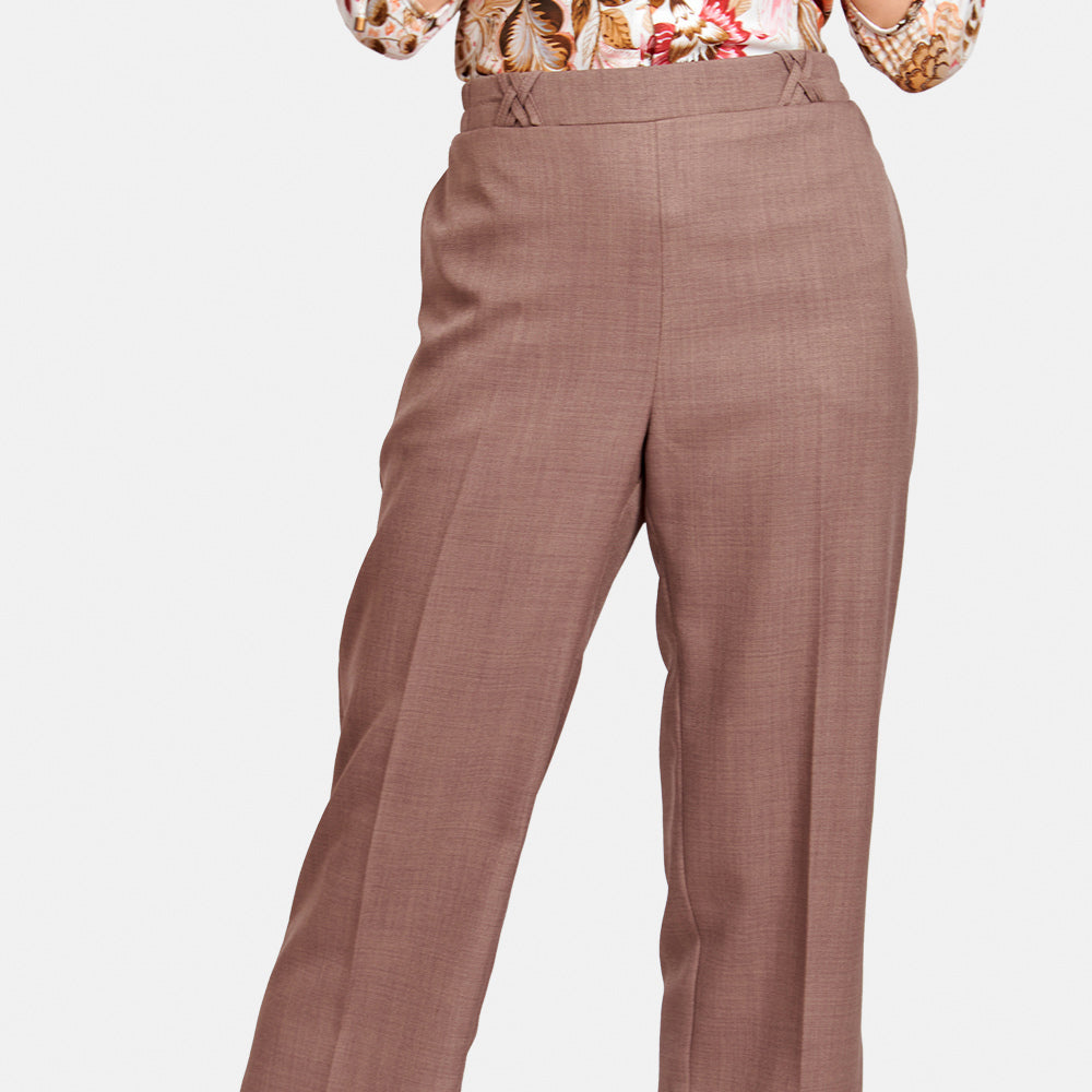 Lavar pantalones con agua fría y detergente líquido. No usar blanqueador, no exprimir. Si es necesario plancha tibia.