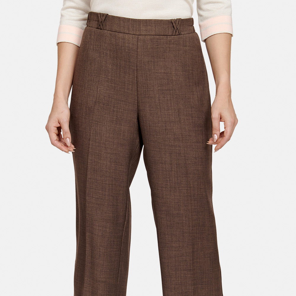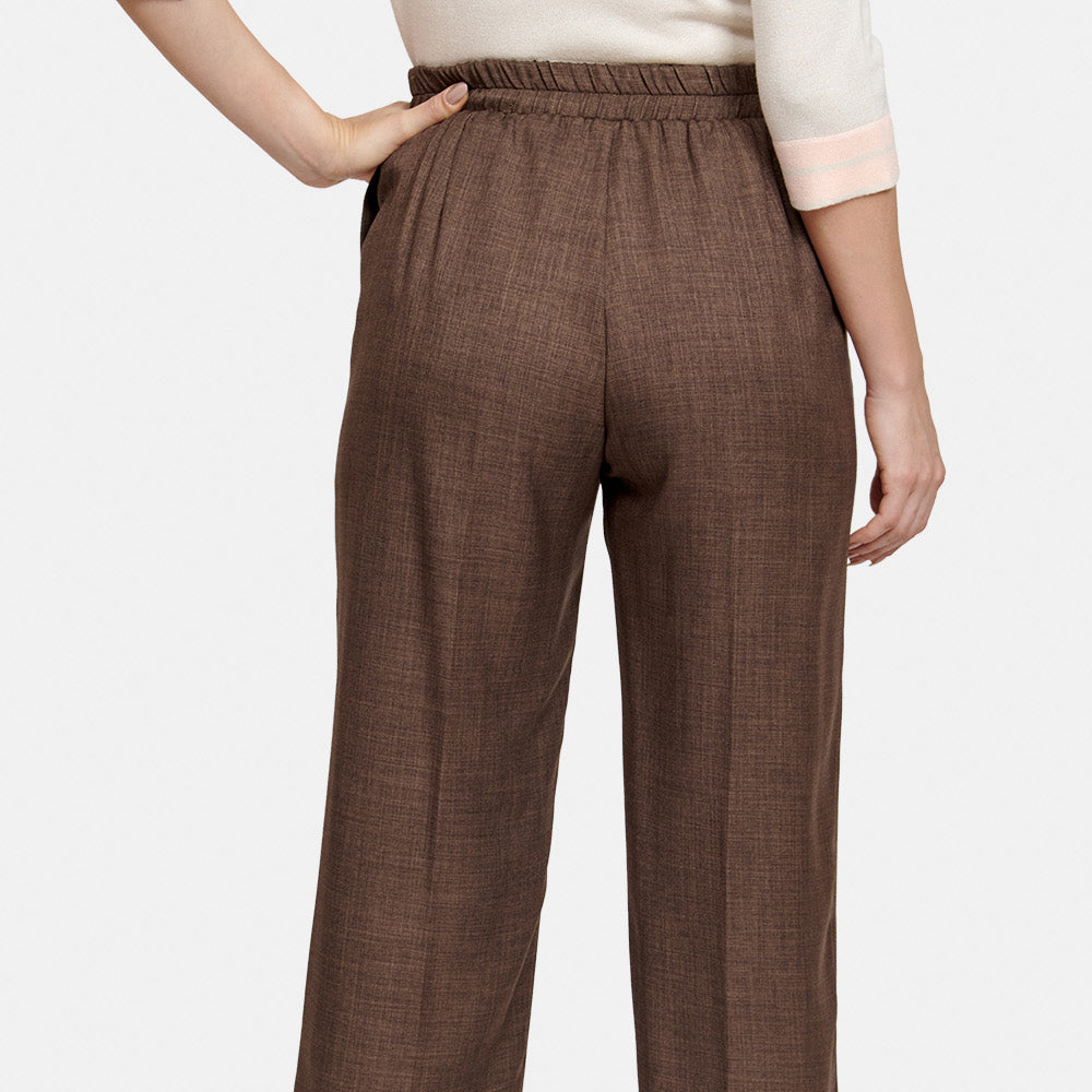 Lavar pantalones con agua fría y detergente líquido. No usar blanqueador, no exprimir. Si es necesario plancha tibia.