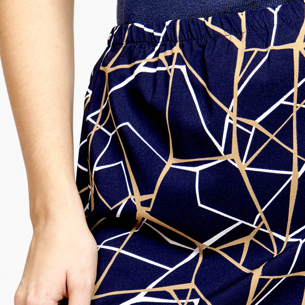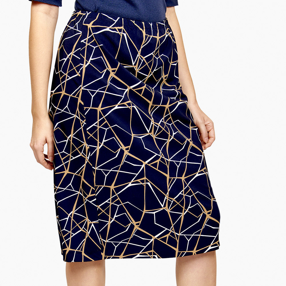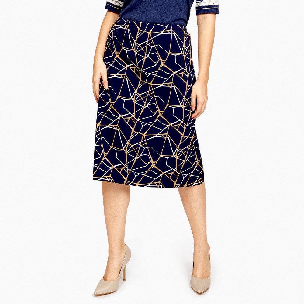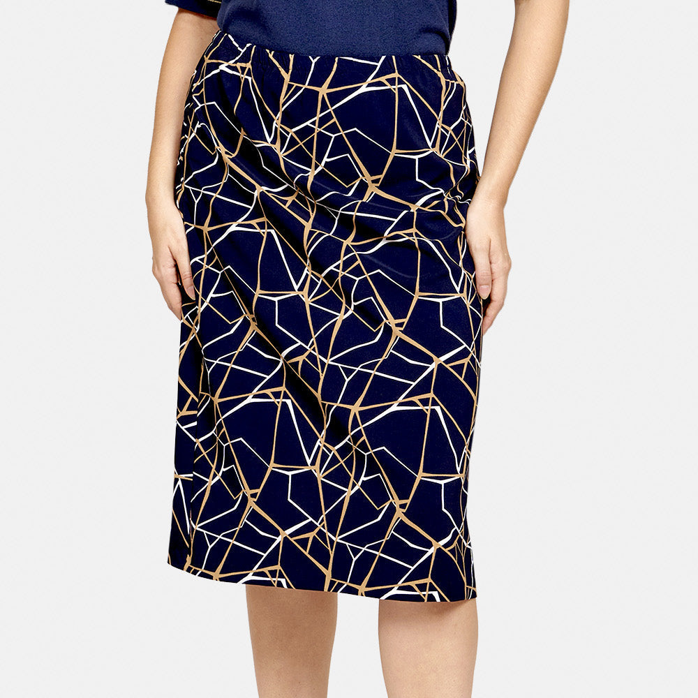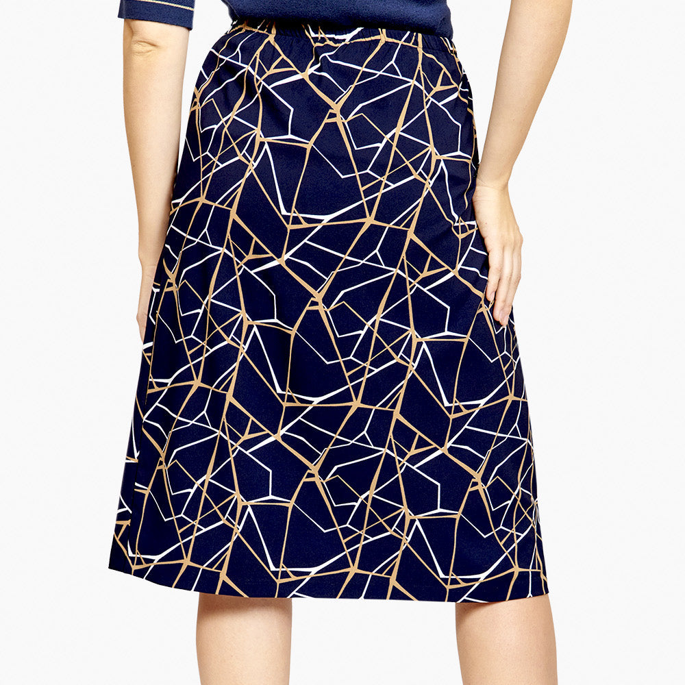 Falda corte linea A y citura elástica y estampado geométrico en tono azul marino Toscana