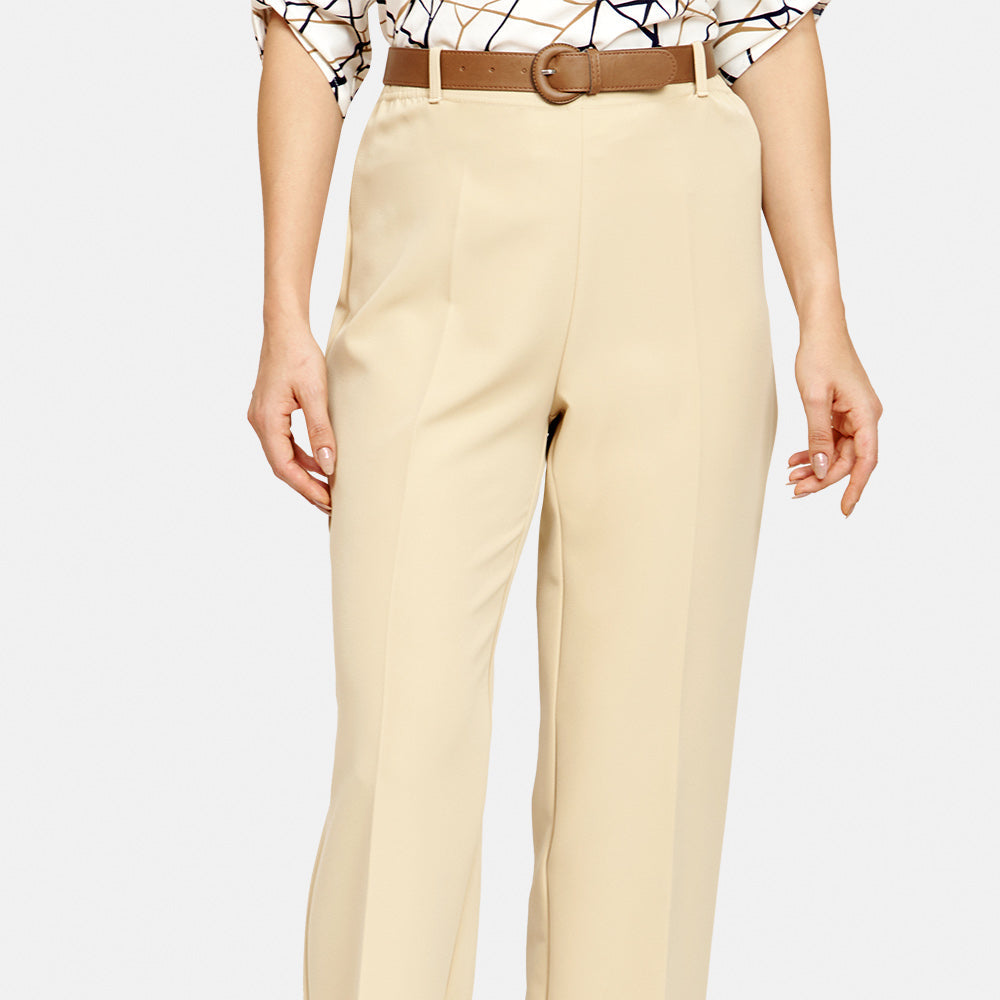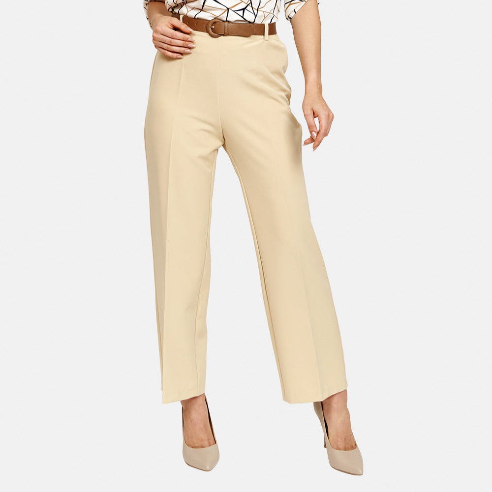 Pantalón recto en color beige con cinturón de hebilla Toscana.