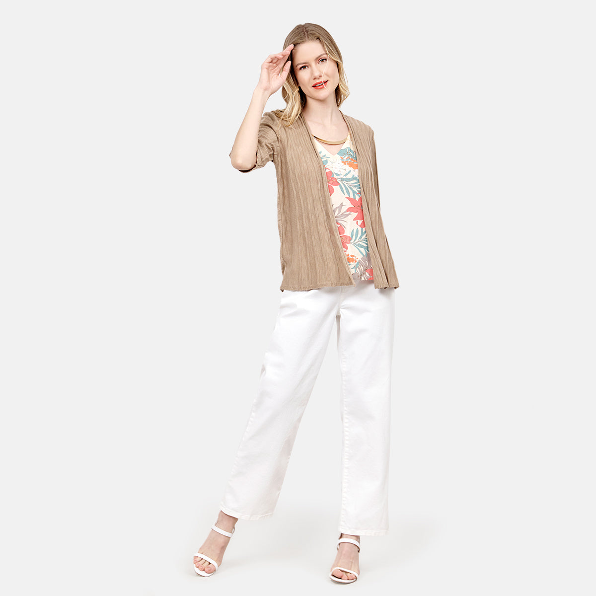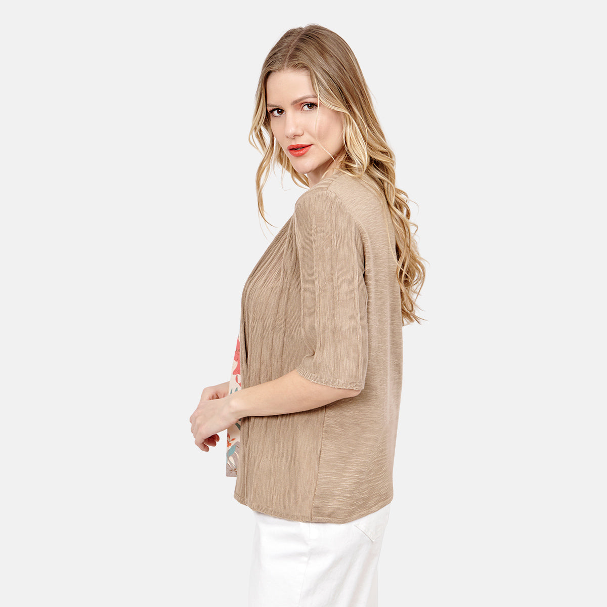 Twin Fix en tejido café con top estampado floral Candela