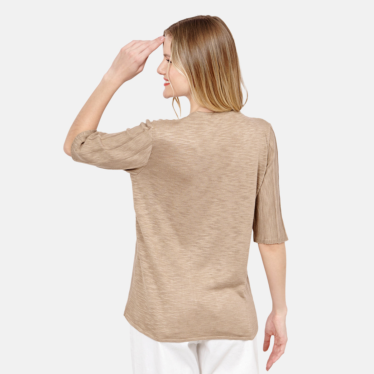 Lavar a mano, con agua templada y jabón neutro. Secar sobre una superficie plana. No colgar ni planchar.