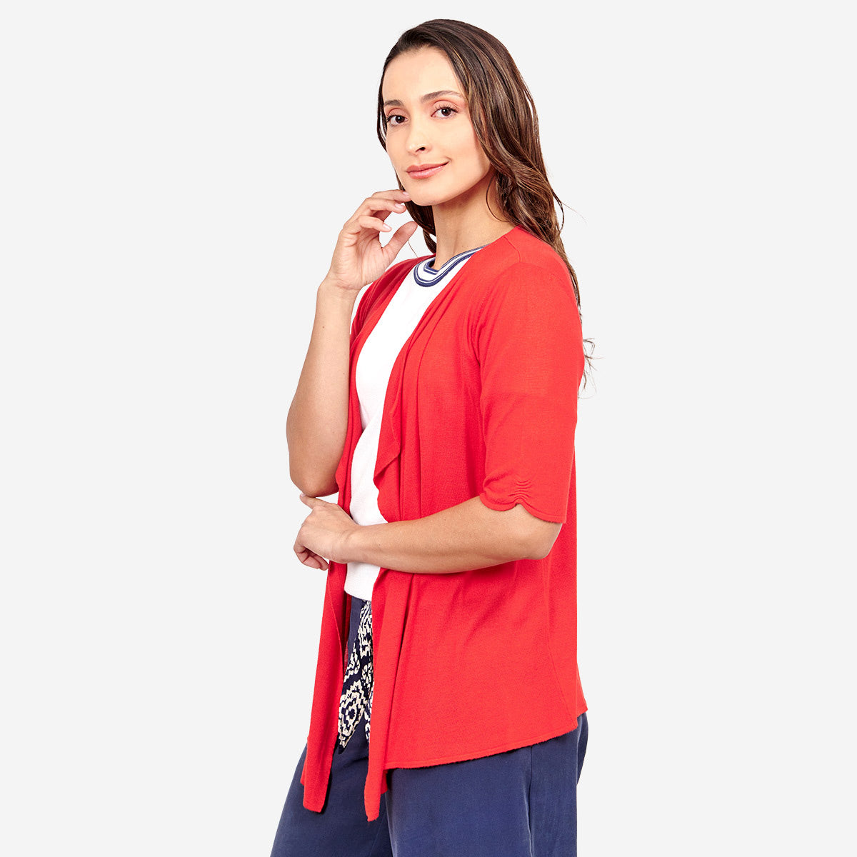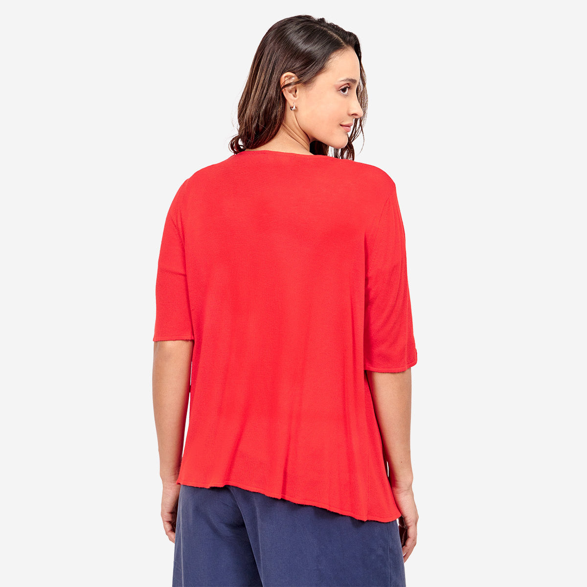 Cárdgian de corte asimétrioc en solpa en color rojo San Blas