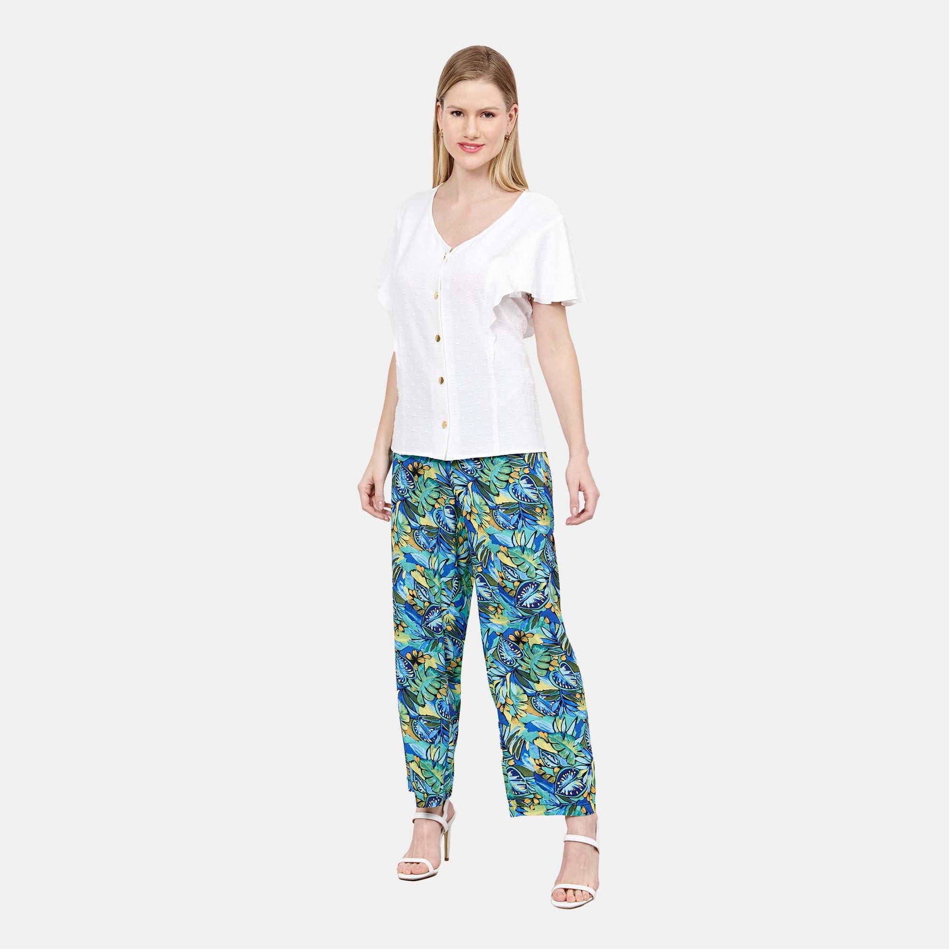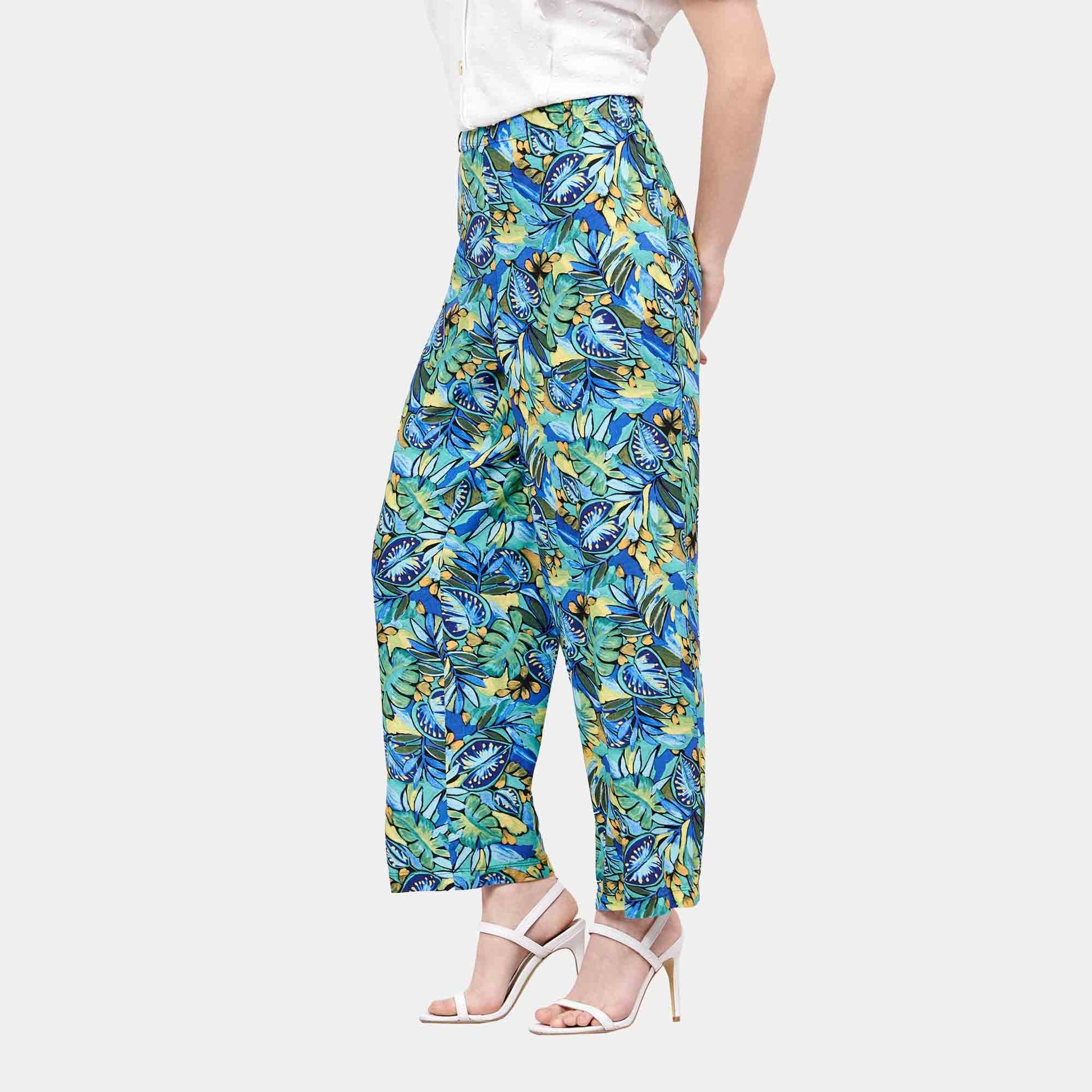 Pantalón estampado tropical con pretina volteada Cadereyta