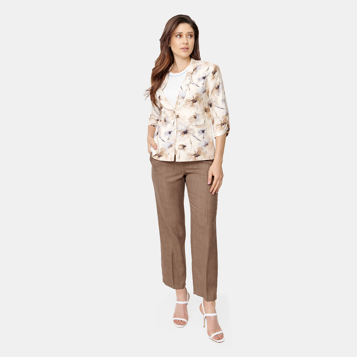 Saco estampado floral con plisado y manga 3/4